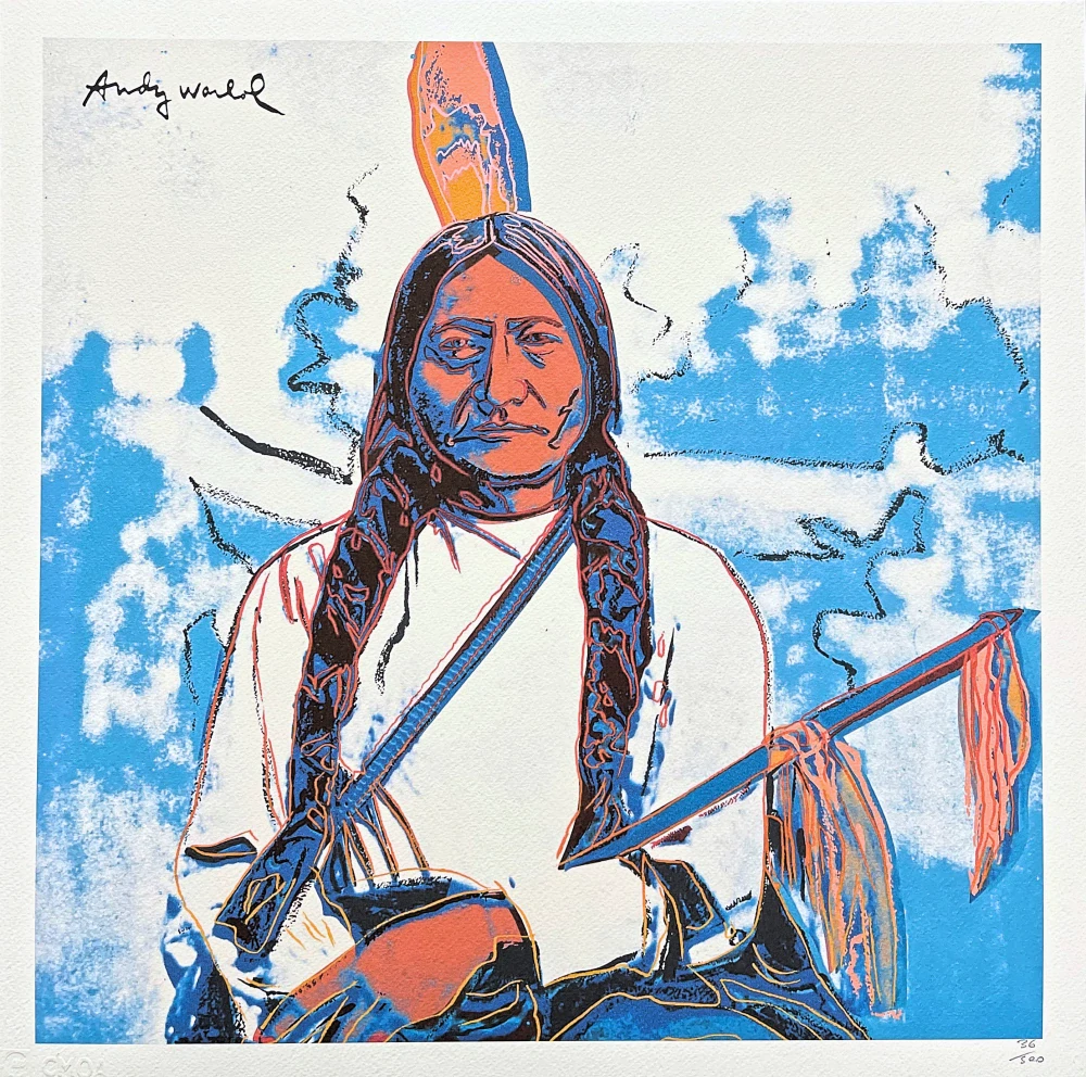 Andy Warhol (after) Název: Sitting Bull - bílo-modrý Technika: Barevný litoofset - Litografia grafic printed offset Edice: CMOA - Carnegie Museum of Art Přiložena certifikace vydavatele grafiky Rozměr: 50 x 50 cm Typ papíru: Ruční papír Lenox Museum Signováno: Andy Warhol - signováno tiskem Číslován... celý popis
