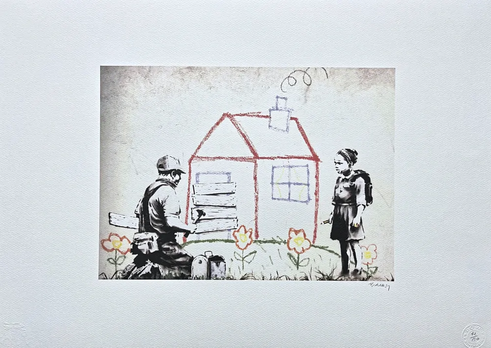 Banksy - Crayon House Foreclosure 42/150 - číslovaná edice s certifikátem, 70x50cm