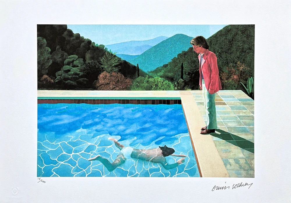 David Hockney - Portrait of an Artist Pool with two Figures II 16/500 - limitovaná edice s certifikátem, 50x35 cm