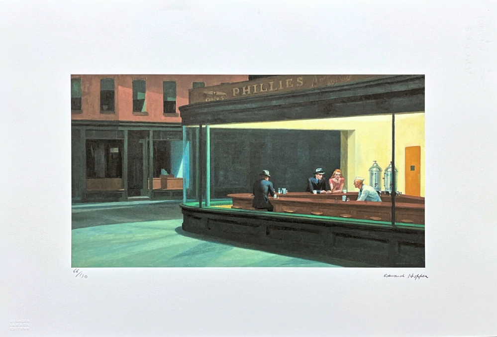 3. Edward Hopper - Nighthawks 66/150 - limitovaná edice, s certifikátem, 57x38 cm