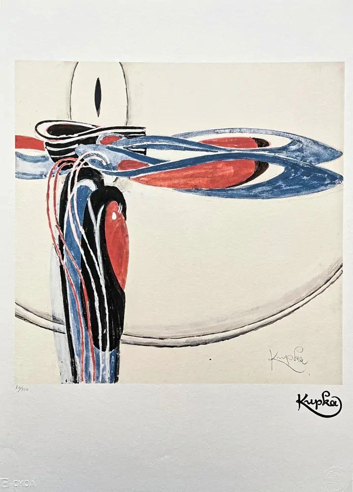 - František Kupka - Abstrakce s červenou a modrou I 86/350 - limitovaná edice s certifikátem, 50x70cm