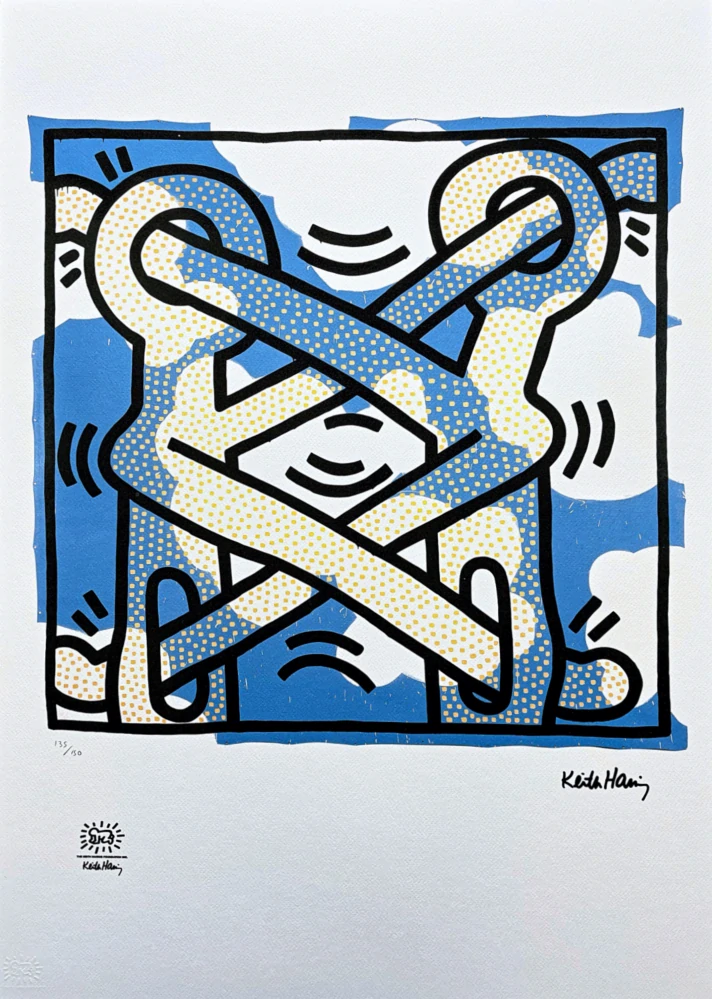 Signováno: Keith Haring - signováno tiskem + tištěné logo: The Keith Haring Foundation inc. (Nadace Keitha Haringa)