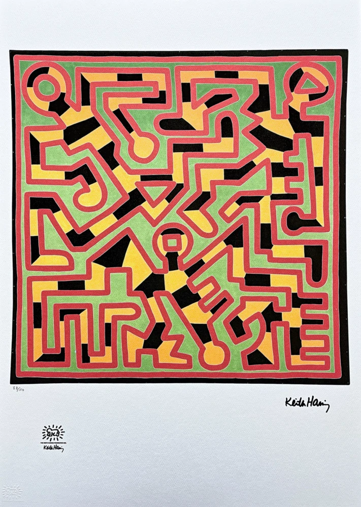 Signováno: Keith Haring - signováno tiskem + tištěné logo: The Keith Haring Foundation inc. (Nadace Keitha Haringa)