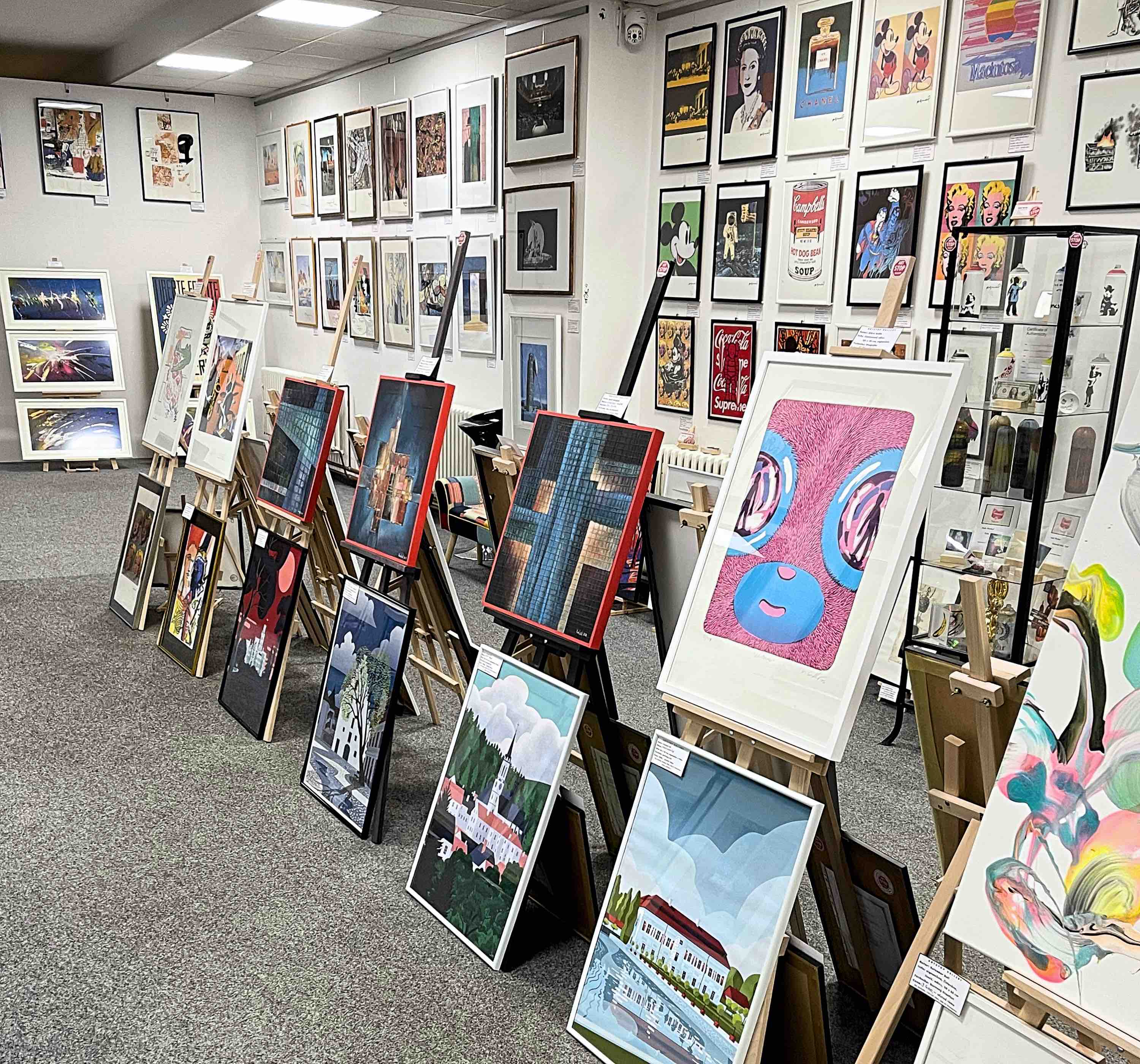 Můžete si zde prohlédnout a zakoupit veškeré produkty, které vidíte na e-shopu a spousta dalších děl, která jsou k vidění pouze v galerii. Několik umělců nám také poskytlo výhradní zastoupení, to znamená, že některá díla si můžete prohlédnout a zakoupit pouze u nás.